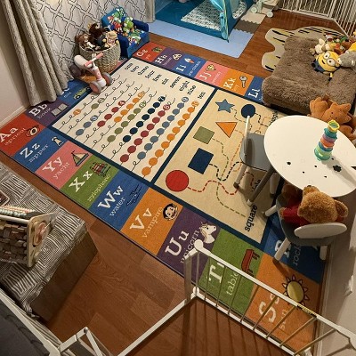 Great rug for an indoor play area - not terribly thick but that’s not what I was particularly looking for - the colors are fun but not too busy - pictures are clear and it’s funny to have so many little educational moments on the rug