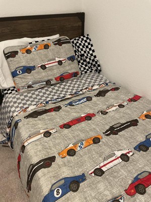 Kids' Race Cars Soft Reversible Oversized Quilt Set Blue/Orange - Lush Décor