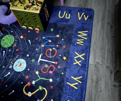 Kids Solar System Educational Rug Galaxy Outer Space Kids Rugs for Kids Bedroom Nursery Playroom Classroom, 4' x 4' Black