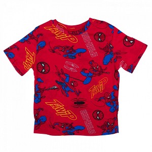 Swing through the city or the monkey bars in style with the help of this officially licensed Spider-Man Web Action Youth T-Shirt. This red Marvel Youth T-Shirt is made from cotton and features a cute Spider-Man Web Action all-over character design.
