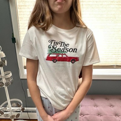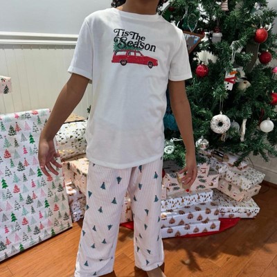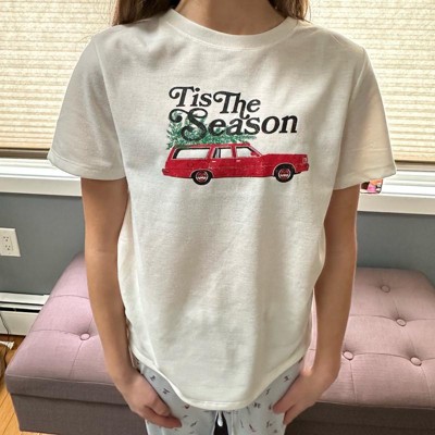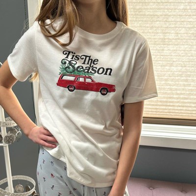 Kids' "Tis the Season" Short Sleeve Holiday Matching Family Pajama Shirt - Wondershop™ Cream XS