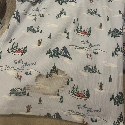 Get your little one winter-ready in cozy style with the Kids' "Tis the Ski-son!" Cozy Knit Long Sleeve Shirt and Pants Holiday Matching Family Pajama Set from Wondershop™ in Blue. This two-piece set includes a soft jersey knit sleep shirt with a cheerful "Tis the Ski-son!" graphic and long sleeves for warmth. The matching full-length pajama pants feature a full elastic waistband for a comfy, pull-on fit. Perfect for family photos, movie marathons or chilly holiday mornings, this set brings festive spirit and snuggly comfort to your little skier’s bedtime routine.