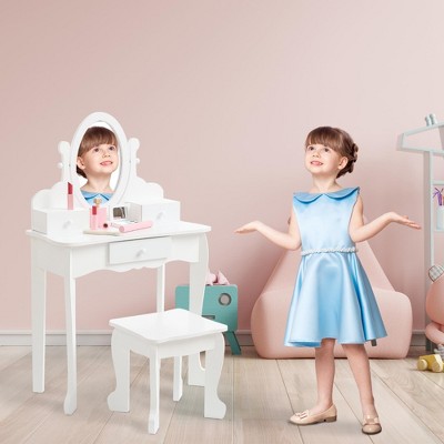 Kids Vanity Set with Mirror Wooden Makeup Table for Girls Ages 3 to 8 Kids Vanities Dress Up Playset for Bedroom and Playroom Furniture white