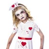 Grab this Kids Zombie Nurse Costume with your rotting, mouldy hands this Halloween to ensure your little one looks like the most gruesome kid on the block! Set fear into fellow trick-or-treaters as you show up for some tasty treats at doors or at parties this spooky season. This zombie nurse dress features a white tattered dress with a matching fabric nurse headband covered with fake blood splats. Pair up this costume with some zombie face paint, fake blood and a bucket to get trick or treat ready. Discover more zombie costumes for kids here.