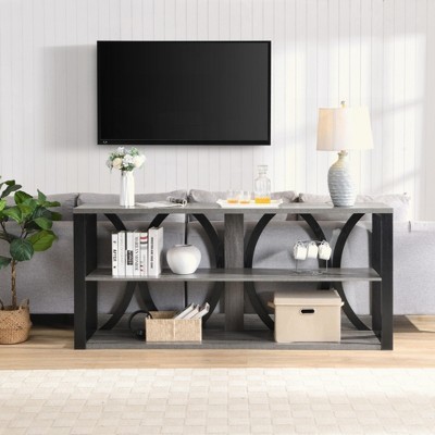 KIGFTSOD 66in Modern Minimalist Console Table features a black arch base and natural wood top, blending modern aesthetics with natural charm. Durable, space-saving, and versatile, it fits entryways, living rooms, and more, with easy assembly.