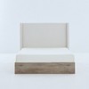 - This finish is popular in modern, scandinavian, and farmhouse-style, as it gives a natural look textured ivory canvas chenille fabric that pairs well with light rustic oak color bed frame and minimalist designs