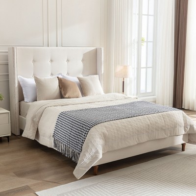 Product Name: KIGFTSOD Elegant Simplicity Queen Size Boucle Tall Headboard Upholstered Bed,Cream White