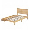 KIGFTSOD Bed with Rattan Headboard, Two Storage Drawers