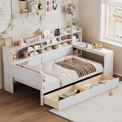 Product Name: KIGFTSOD Full Size Wooden Daybed With Three Drawers, and All-in-One Cabinet, Desk and Shelves, White
