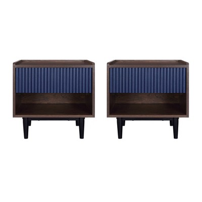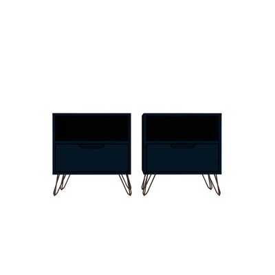 KIGFTSOD Nightstand with Storage Drawer Bottom Shelf Classic Style Bedroom Furniture,Navy Blue
