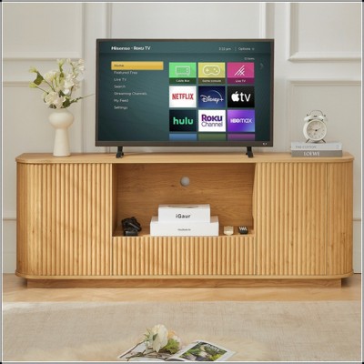 Product Name: KIGFTSOD Wave Shaped TV Stand – Rounded Corner Sideboard, Storage Cabinet & Buffet, Wood Vertical Striped w/Rattan Doors for Kitchen/Bedroom/Entryway