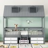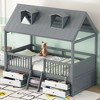 Featuring roof and fence, this bed designed to spark joy and imagination in any bedroom setting. Crafted with care and attention to detail, this bed offers a delightful blend of whimsy and functionality. Experience the magic of childhood dreams with our Wooden House Bed ¨C Where imagination knows no bounds.