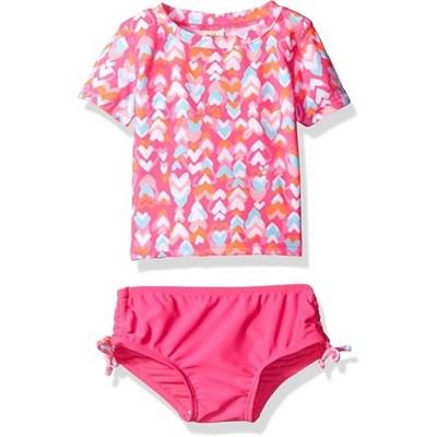 - STYLISH DESIGN: Your little girls will look adorable in these 2 Piece Bathing Suits. The vibrant colors, designs and fun prints make it a stylish choice for any day at the beach or pool. Each one has it's own unique style, short sleeve tops and bikini bottoms with ruffle trims that your little girl will love. The two pieces are available in a range of sizes to suit baby, infants, toddlers and little girls.