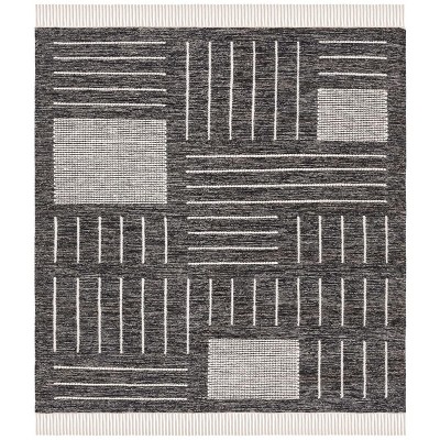 Kilim KLM448 Hand Woven Area Rug - Ivory/Black - 6'x6' - Safavieh