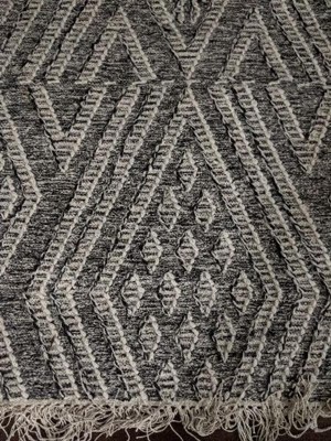 Adorned in a timeless BLACK / IVORY colorway, the rug showcases an intricate geometric pattern that brings a touch of sophistication and visual interest to any room. The bold contrasts and the precision of the design reflect the meticulous hand-loomed technique utilized by skilled artisans, making each piece a unique work of art for your floor.