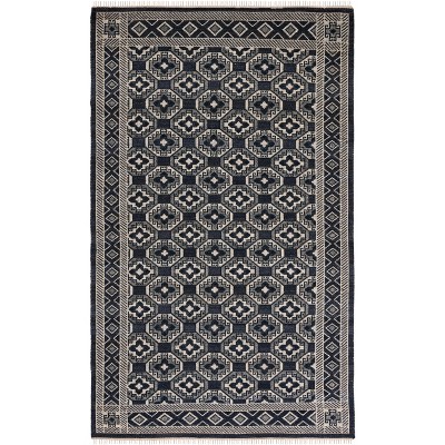 Kilim W/ Fringes KLM726 Flat Weave Indoor Accent Rug - Black/Grey - 3'x5' - Safavieh