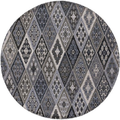 Kilim W/ Fringes KLM728 Flat Weave Indoor Area Rug - Black/Ivory - 6' Round - Safavieh