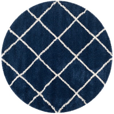 Kilim With Fringes KLM764 Flat weave Area Rug - Navy/Ivory - 7' Round - Safavieh
