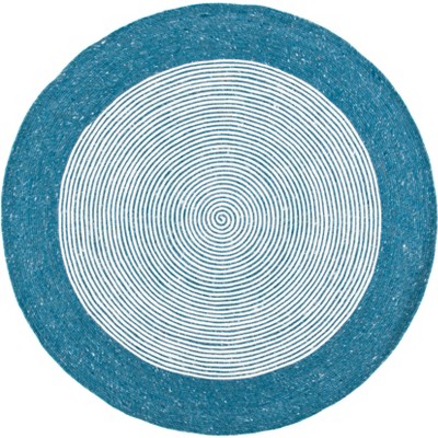 Kilim KLM851 Hand Woven Area Rug - Teal/Ivory - 6' Round - Safavieh