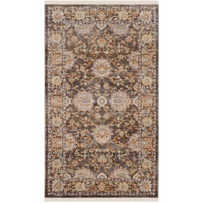 Featuring a rich palette of brown with vibrant multi-colored accents, this rug showcases an intricate pattern that draws inspiration from indigenous cultures and nature's aesthetic. The harmonious combination of earth tones with pops of orange, yellow, and red gives this rug a distinctively warm and inviting character.