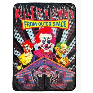 Add a creepy touch to your home with this Killer Klowns from Outer Space silk-touch throw. Featuring the vibrant Crazy House design from the science fiction comedy horror film, this piece combines detailed artwork with practical warmth. Its 46" x 60" size provides ample coverage for lounging, layering on furniture, or adding a striking accent to any room.