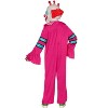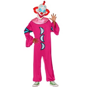 The Killer Klowns From Outer Space Slim Child Costume is designed to resemble Slim, one of the memorable characters from the movie. The costume features a bright pink jumpsuit with colorful accents that mimic the whimsical and slightly eerie clown aesthetic seen in the movie. The centerpiece of the costume is a clown mask that looks just like Slim's face. The mask captures Slim's distinctive features, which includes his exaggerated eyes, a wide grin, and elongated facial characteristics specific to Slim. The Killer Klowns From Outer Space Slim Child Costume is a fun and recognizable choice for young fans of the movie who want to dress up as Slim for costume parties, Halloween, or other themed events. It captures the whimsical yet slightly creepy essence of the character, making it a standout costume option.