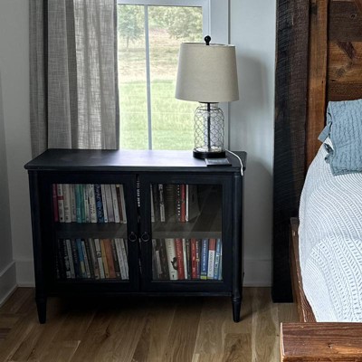 Killybrooke 2 Door Glass Cabinet Black - Threshold™ designed with Studio McGee: Brass-Finish Handles, MDF Wood Frame, Display Storage