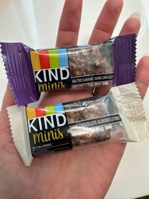 - Twenty 0.7 oz KIND Minis Salted Caramel Dark Chocolate Nut and Dark Chocolate Almond Coconut Variety Pack gluten free bars