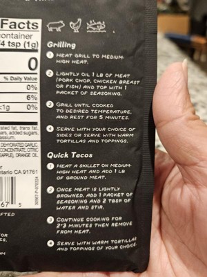 [This review was collected as part of a promotion.] This seasoning packet was so good I made tacos and the ingredients in this packet really bought the flavor to life. I like that the design is different from other seasoning packages easy to find. I will definitely buy more Thanks Influenster for the complimentary Spanglish seasoning pack.