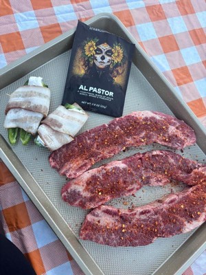 [This review was collected as part of a promotion.] Spanglish Al Pastor seasoning Omggg! This stuff it's sooo good. I put this on my steak and grilled it. The flavor is perfect, and I could see this being used in so many different ways. I would definitely recommend this, I will mostly be buying this!