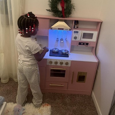 beautiful kitchen, my daughter loves it! it’s very fun with great storage space. overhead light and fan noise as well as stove top noises. BUT it was an absolute nightmare to assemble. very tedious, i messed up a couple of times because the instructions were only pictures and one picture showed wrong but after about 4.5hours of assembling alone on xmas eve, it all worked out. get a screwdriver, give yourself some time and just breathe...it's actually worth it!