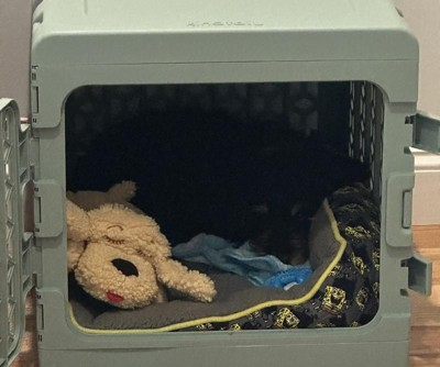 Great crate for you young and elderly dogs. I first got this med crate for my sick elderly schnauzer. She hadn't been keen on crates since she was a pup but immediately went for it. It was a cozy space for her in her last year. I now have a puppy and I got the small and she has easily gone for it. It is currently by the bed and I keep the other one in the living room. She uses both. Highly recommend!