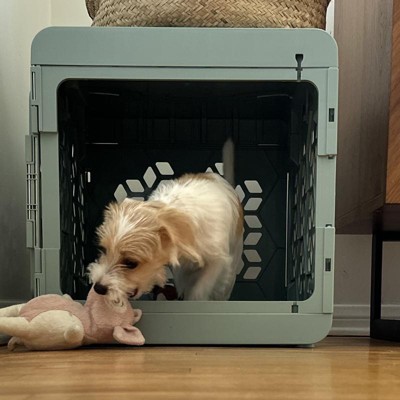 - Small is made out of ABS plastic and medium dog crate is made out of polypropylene, both BPA and toxin-free