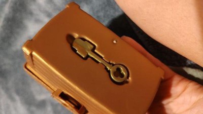This was a cute little set up. The key is located on the bottom. Once unlocked there is a good amount of sand with 2 little gems and a small figure. The gems and figure are choking size so not ideal for kids who put stuff in their mouth (easy enough to remove). The price was spot on for what it is.