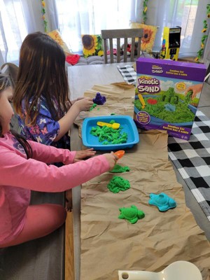 submitted byLynn - 3 months agoA: Hi there, the Kinetic Sand Sandbox Set comes with 1lb blue Kinetic Sand and 4 molds. Hope this helps!