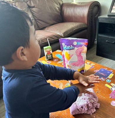 [This review was collected as part of a promotion.] My kids loved it so much! They stayed playing for hours with it! I love that its mess free! Its easy for them to shape and play with it with other toys!