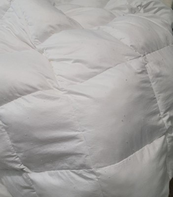 Purchased this comforter in January and was very happy with it, very fluffy and soft. I put the comforter in a duvet and when I went to remove it to wash for the first time little balls of cotton where everywhere! A mess! The pictures don't show the balls very well because the comforter is white so I attached a pic of my hubby's shirt that shows what was all around my bedroom. I expected more from something that cost over $100 and I can't even return it.