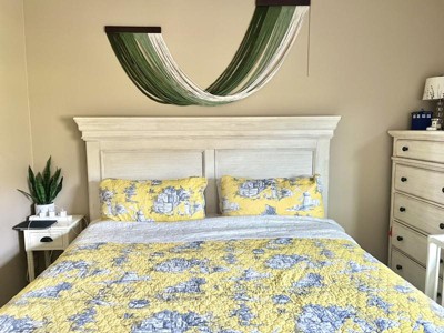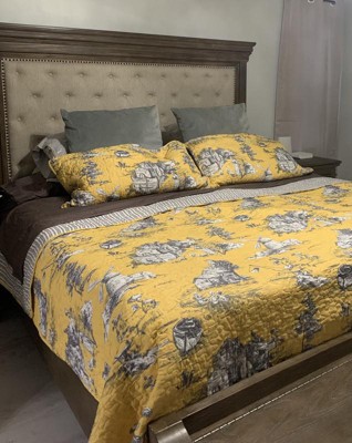 King 3pc French Country Toile Reversible Quilt Set Yellow/White - Lush Décor