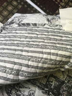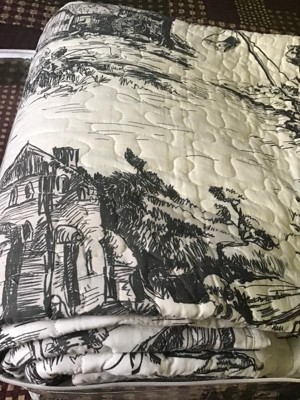 [This review was collected as part of a promotion.] The French Country Toile Reversible Quilt in white/charcoal, is a well made quilt. As soon as I opened it up, the stitching was the first thing I looked at, and was very good! The backing material is 100 percent cotton. The quilt is also reversible, and so are the 2 shams that come with it. It’s not heavy, yet it’s not super thin either. I got the king size, and fits my bed perfect! I’m very happy with this quilt set.