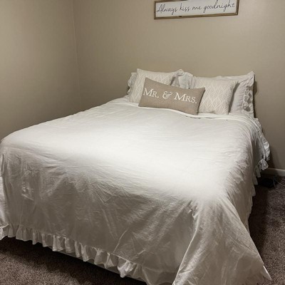 Transform your primary bedroom or guest bedroom into a haven of elegance and style with the Lush Decor Reyna Ruffle Duvet Cover Set. This incredibly soft and beautifully textured bedding features a frilly ruffled border which will brighten any bedroom. Once you style this king duvet you'll never want to get out of bed. It's really that cozy! This king size duvet cover set is perfect for lovers of farmhouse, Parisian chic, minimalist, cottage or vintage design styles. This 3 piece king size bedding set includes 1 duvet cover and 2 matching pillow shams. Because it is a solid color, it is stylish on its own, but is also ideal for creating a layered look for your bed. This ruffled bedding set is made of 100% cotton fabric and is very soft to the touch. Choose your own fill and change it seasonally so you have the perfect weight year round. For use with an insert, easily secure the duvet with the button closures and use the four internal corner ties to keep your comforter in place. Add your ideal insert weight for year-round comfort and easily secure it with button closures and corner ties. STANDARD 100 by OEKO-TEX® certified, all components have been tested and certified free from harmful substances. For your convenience, this ruffled bedding set is machine washable cold on gentle cycle and can be tumble dried on low. Please refer to label for full care instructions.