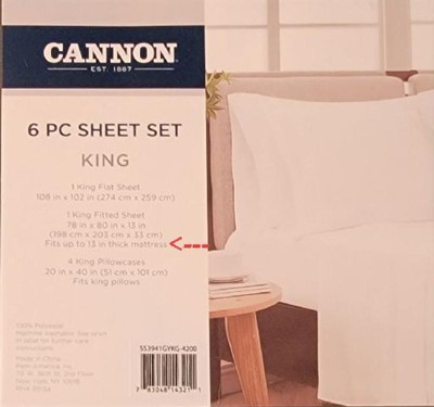 Since 1887, Cannon has been a brand with powerful heritage and products that are known for their high quality, easy care and style. The Cannon Heritage Collection of solid colors is the perfect coordinate for your home. These quality polyester items are perfect for your home and will serve you for years. Cannon Heritage Solid Sheet Sets offer you the added benefit of extra bonus pillowcases in the set. You can use them as backups or every day to cover your multiple pillows that help you get the sleep you need. Sheets and pillowcases feature a soft 100% microfiber polyester woven face cloth. This item is machine washable, but care should be taken to wash in appropriate size equipment to avoid damage. Includes: one fitted sheet 78x80 inches with 13 inch pocket to fit up to a 15 inch deep mattress, one flat sheet 108x102 inches, and four pillowcases 20x40 inches.