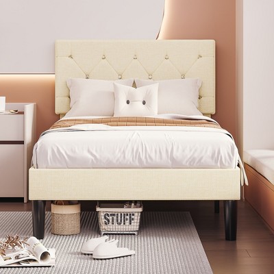Built with a metal frame, solid wood slats, and reinforced legs for long-lasting durability. EVA strips minimize friction noise, while the high-density sponge-filled linen upholstered headboard offers soft, supportive comfort for reading or relaxing.