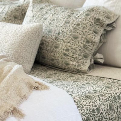 - Botanical print pillow sham with decorative border