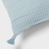 Give new life to a pillow with the Double Cloth Quilt Sham from Threshold™. Boasting a cotton-polyester blend shell (polyester fill), this decorative pillow sham is adorned with a textured pattern in jacquard finish, along with tasseled corners for added appeal. It also has a zipper closure to lend the perfect fit and make it easy to remove for convenient cleaning. Great for adding some texture and softness to the top of your bed, you'll love the easy refresh this pillow sham brings to your home decor.