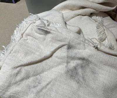 I saw this in store and LOVED it! But I needed a different color. I ordered the natural. I was SO excited to get these but my excitement quickly turned to heartbreak. Mine arrived dirty. I thought a wash would do the job but it didn’t. I don’t know what this is so I have no idea how to pretreat this before a second wash. For the price, these should come in a bag not just thrown in a box.