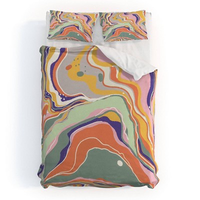King Gabriela Fuente Natumas Polyester Duvet Cover + Pillow Shams Green - Deny Designs: 300 Thread Count, Abstract Pattern, Zip Closure