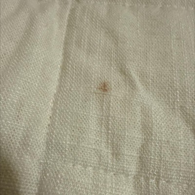 Bought this several years ago. Love the look, but it holds onto every single stain. Tried many different things, and any and all stains do not even lighten. Also drying time in the dryer is a good 3-4 hours.