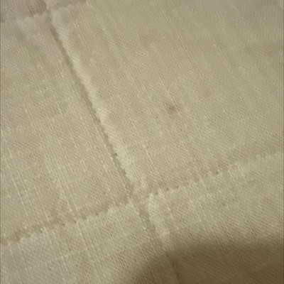 Very disappointed. Quilt came like it had already been opened out of the ribbons that hold it together shoved into a bag. Opened it to find 3 spots. Also, I ordered white but received the natural color.