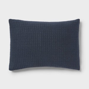Give your bedroom timeless charm with this Jersey Quilt Sham from Threshold™. This sham features a square quilted design that feels like sleeping in your favorite tee-shirt. Made from 100% cotton shell (polyester fill), it offers comfortable year-round use. Plus, it comes with a zipper closure to keep the pillow hidden. Pair with a matching quilt to complete a coordinated bed space.