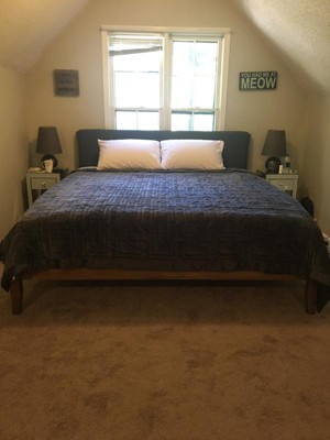- Simple, clean design of this fabric and wood bed frame pairs perfectly with a variety of different decor styles